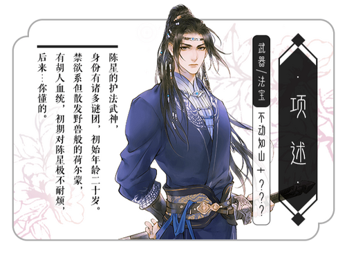 - (his identity revealed early on in the story) Half Hu, Half Han, the Great Chanyu of the Hu People